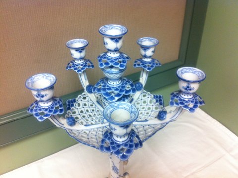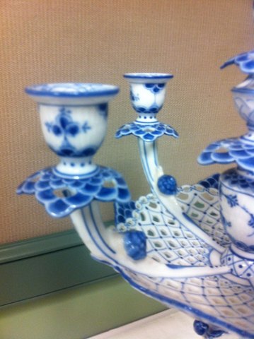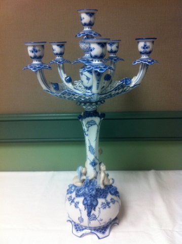 Pair of Royal Copenhagen Blue Fluted Full Lace Candlabras No 1006.