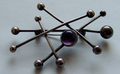 N.E. From Sterling Silver Modern Brooch with Ametyst. Measures 6,1cm and is in good condition.
