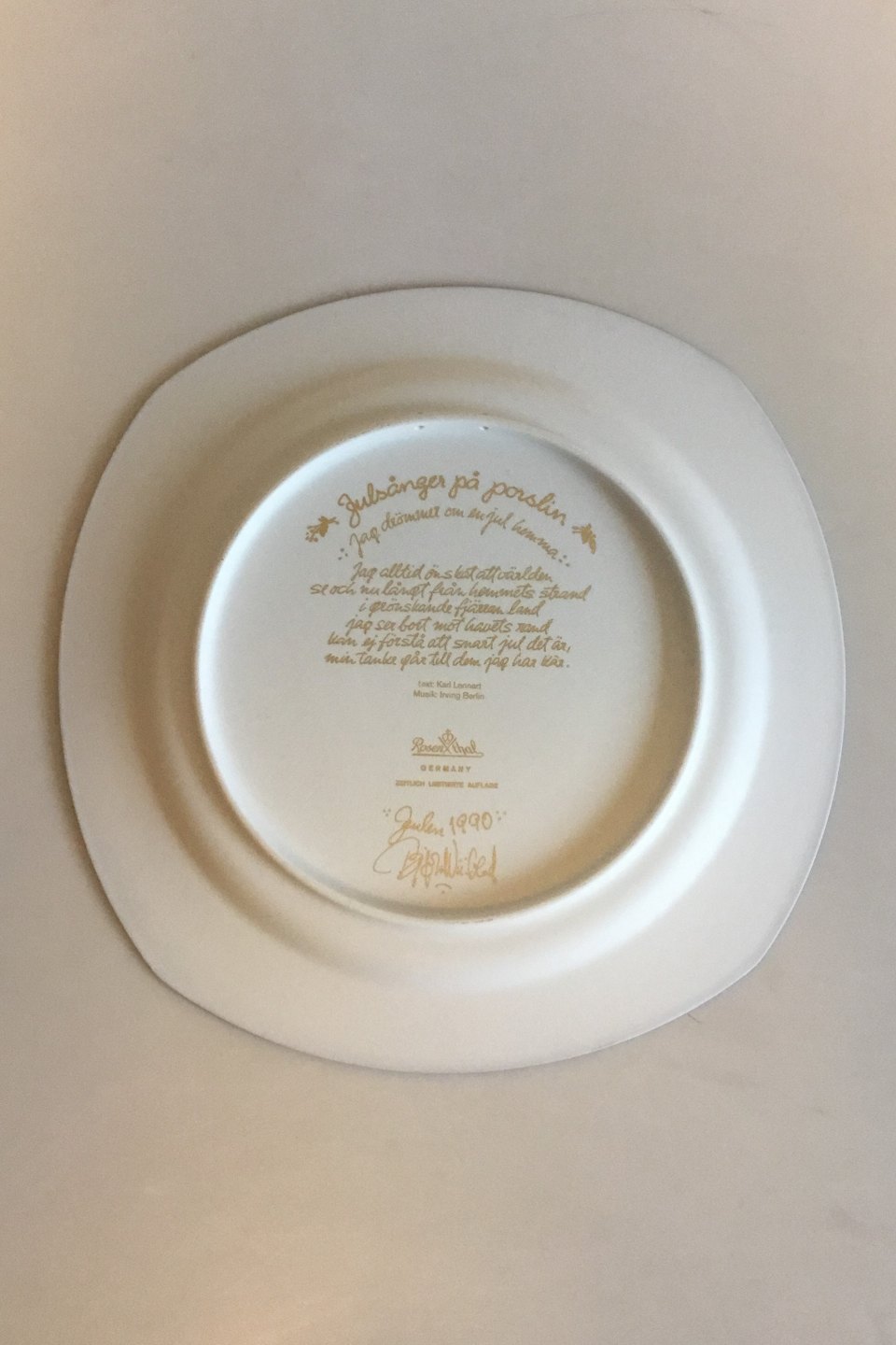 Bjorn Wiinblad Christmas Plate by Rosenthal - White Christmas 1990. Measures 28 cm / 11 1/32 in.