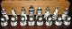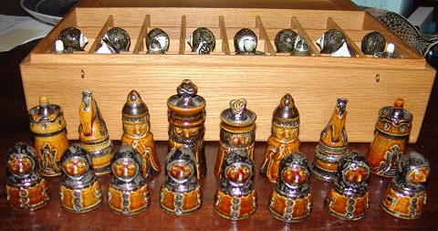Royal Copenhagen Aluminia Chess set piece by Doreen Middelboe 32 pieces. All pieces are in perfect condition and measures from 5cm to 9cm. Box part of the set.