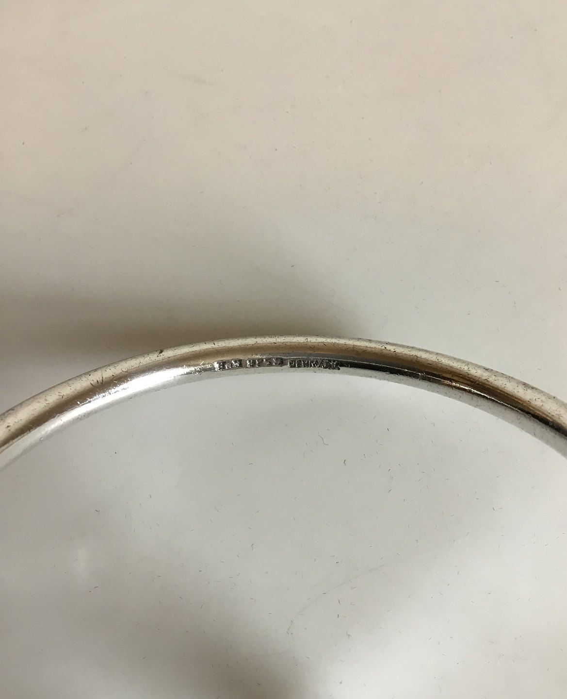 Hans Hansen Sterling Silver Bracelet. Measures 6.5 cm / 2 9/16" in inner measurements and is in good condition. But has sign of use. But gives the bracelet in a nice patina. Weighs 49 g / 1.75 oz.