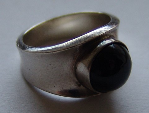 Georg Jensen Sterling Silver Ring with Black Stone No 5380. Measures 1,7cm and is in good condition. Size 53