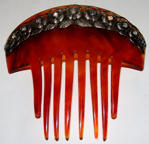 Evald Nielsen Rare Hair Comb in Silver with 11 moonstones. Measures 12cm x 11cm and is in good condition. Marked with EN 830.