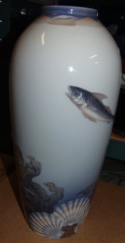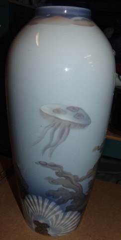 Bing & Grondahl Effie Hegermann-Lindencrone Vase with fish, crabs and Jelly Fish No 6500/14. Measures 36cm and is in good condition.