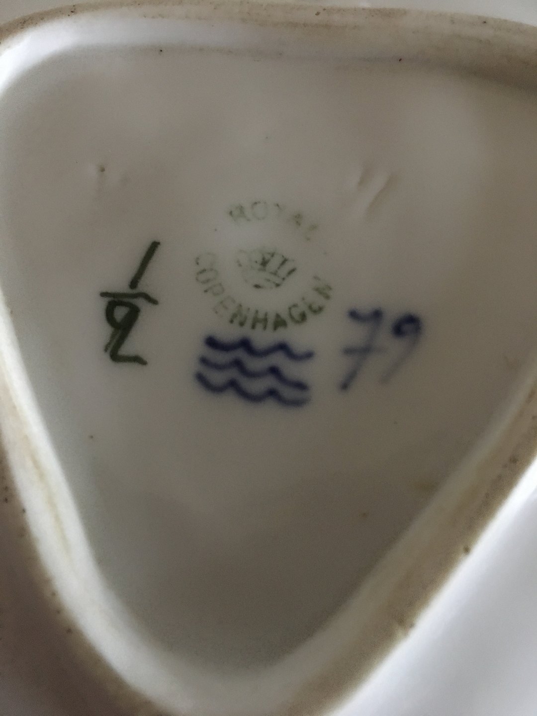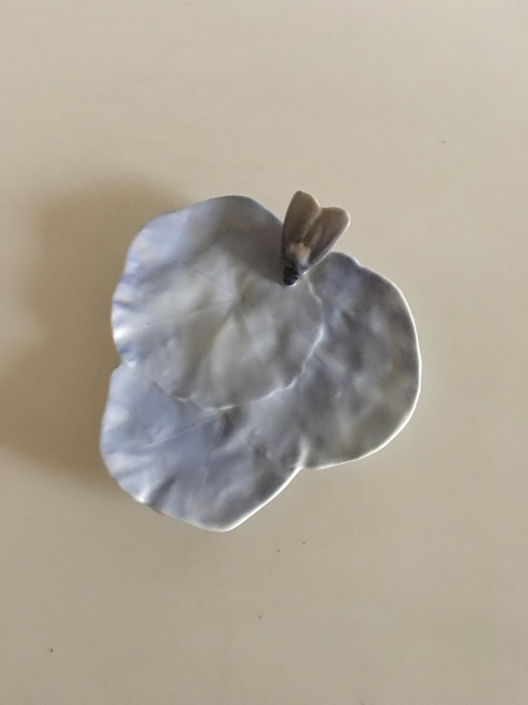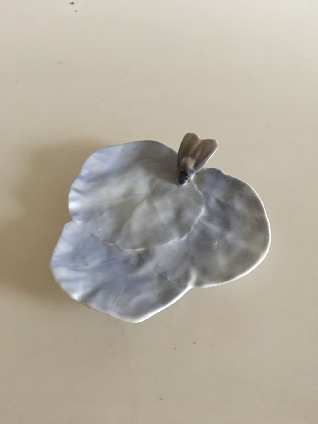 Royal Copenhagen Art Nouveau Water Lilly Pad with Fly No 1/2. Measures 13,2cm and is in good condition.