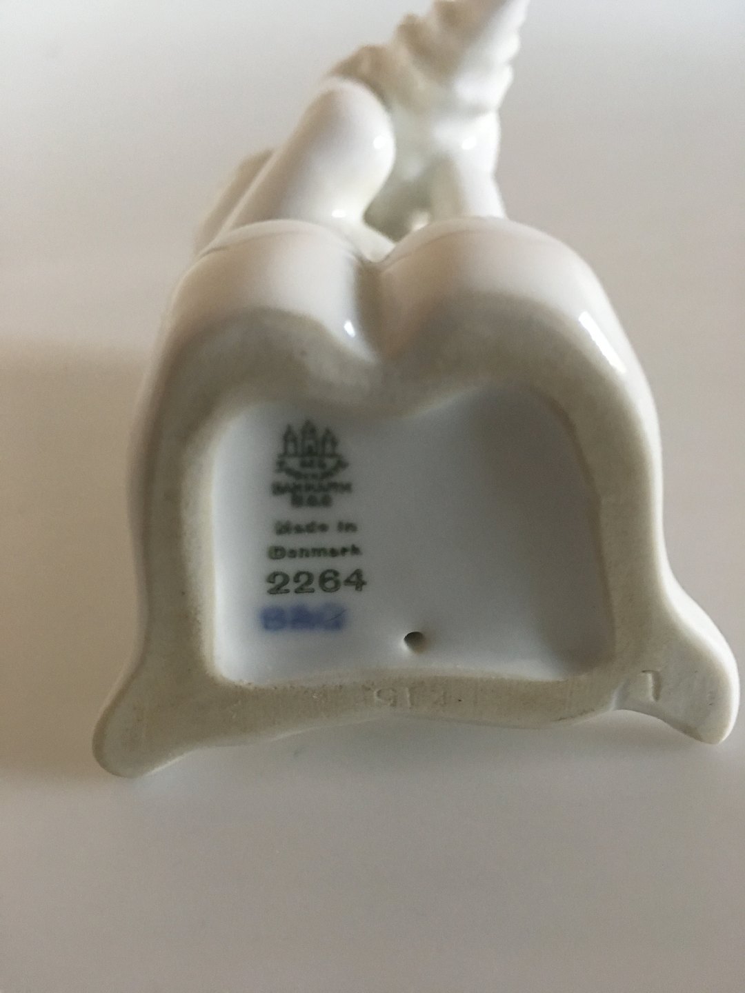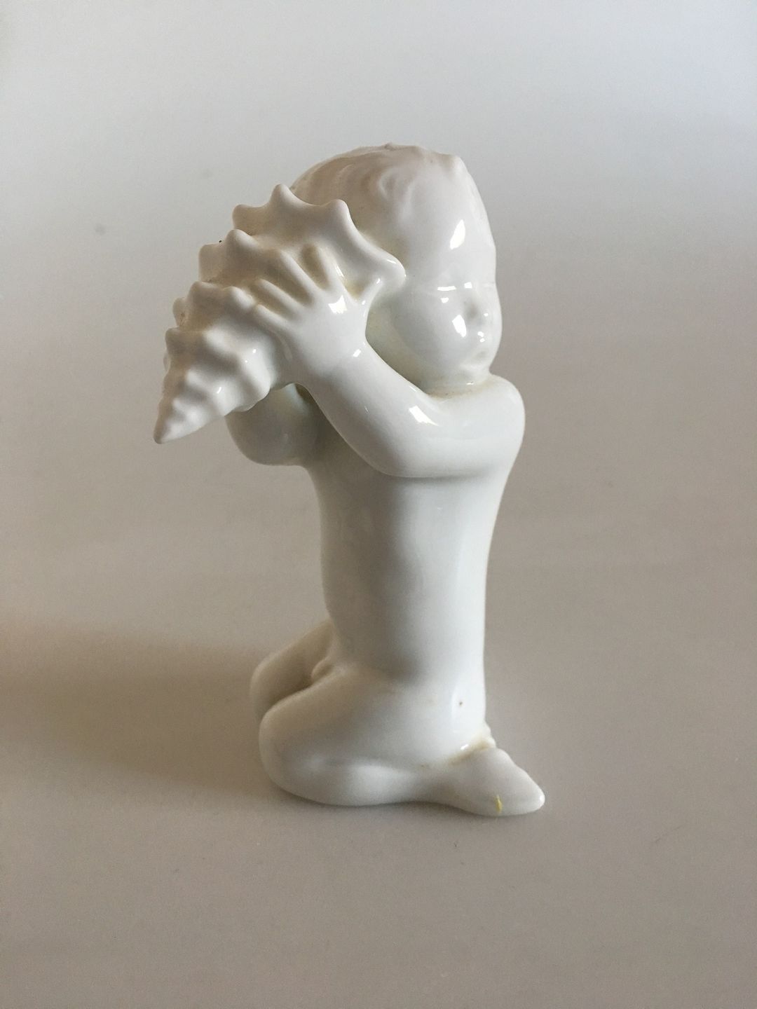 Bing & Grondahl Figurine Sea Boy with shell No 2264. Measures 11 cm / 4 21/64 in. and is in good condition. Designed by Ebbe Sadolin/Svend Jespersen.