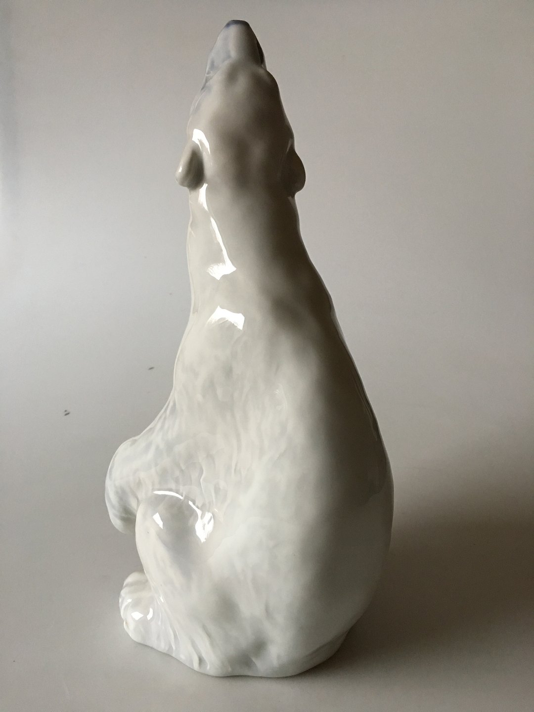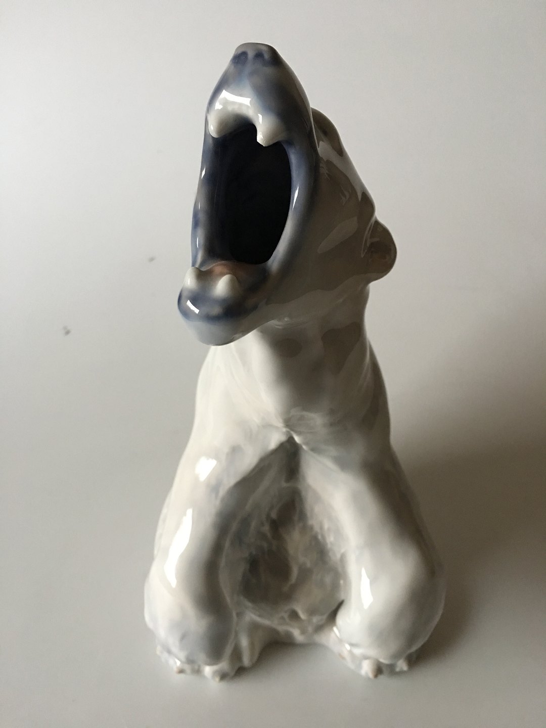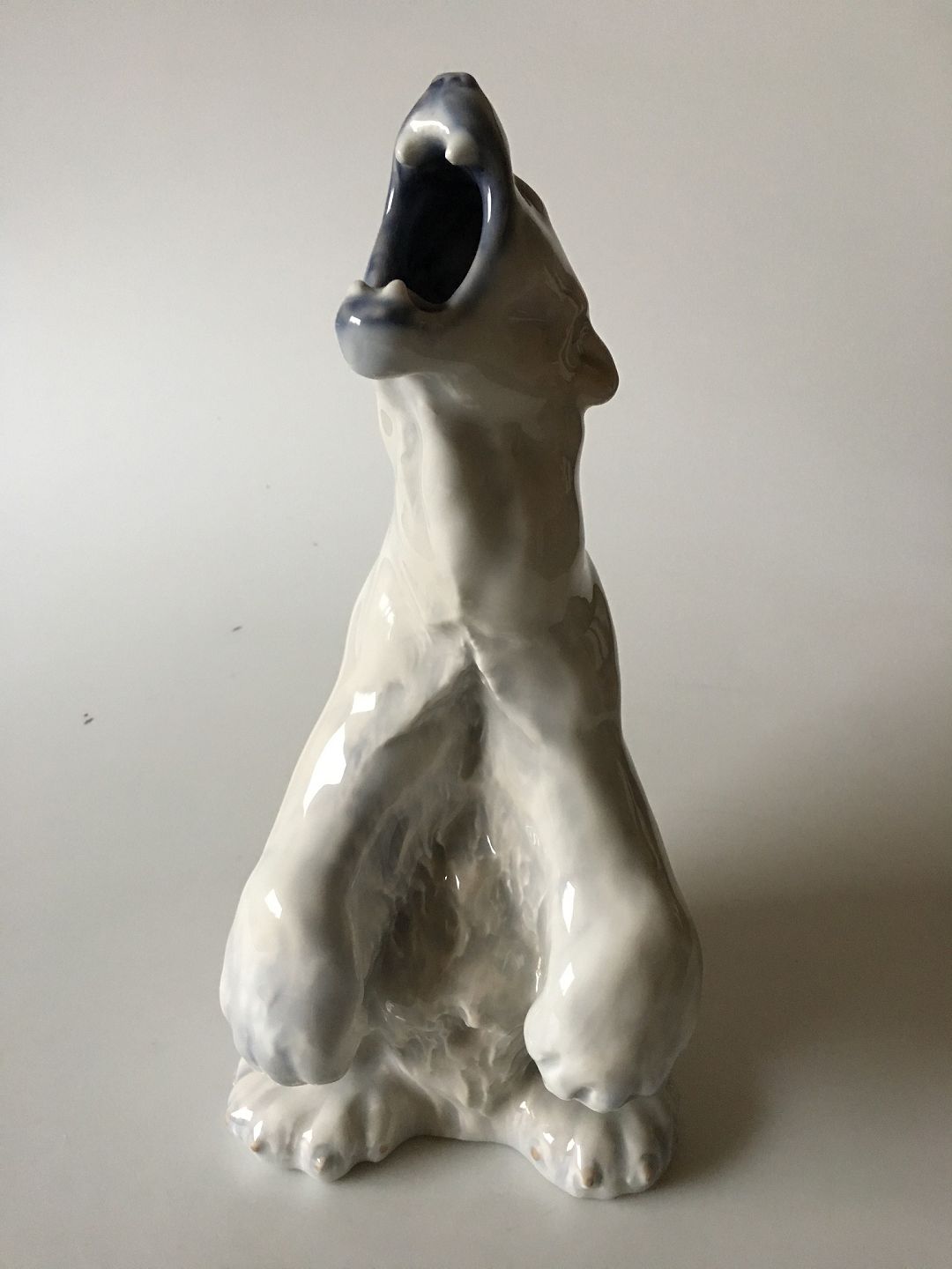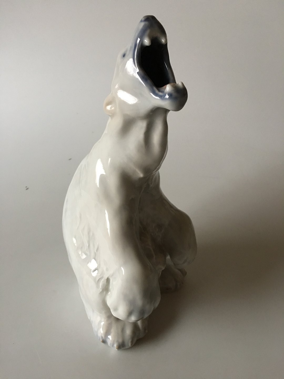 Royal Copenhagen Figurine Roaring Polar Bear No 502. Measures 32cm x 15,5cm x 8,5cm and is in good condition. Designed by C.F. Liisberg.