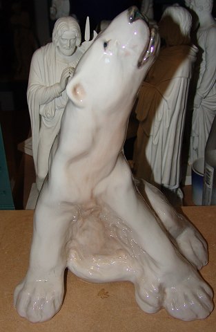Royal Copenhagen Figurine Polar Bear Looking up No 825. Measures 29cm x 23cm. Designed by Knud Kyhn in 1907. Is a 2nd with a small firing crack.