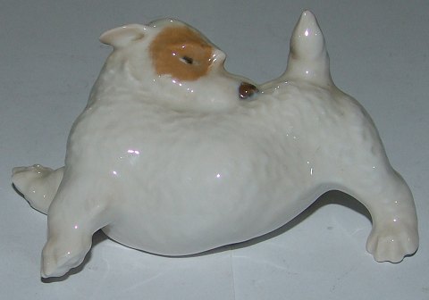 Royal Copenhagen Sealyham Terrier turning Figurine No 3087. Measures 5cm and is in good condition. Designed by Theodor Madsen.