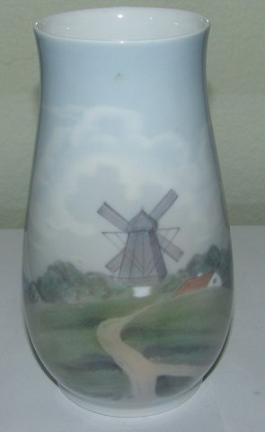 Bing and Grøndahl Art Nouveau Vase with Windmill No. 8522/210. Måler 17 cm / 6.7 in. og er i god stand.