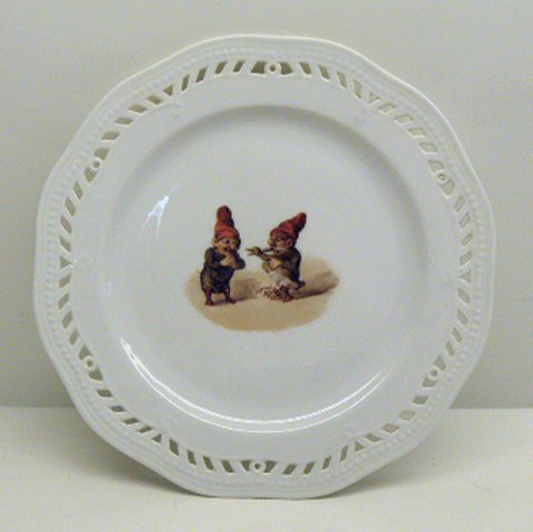 Royal Copenhagen Gnome Moller Plate on Flora Danica Gnomes with duck 1860-1880. Measures 22cm and is in good condition.