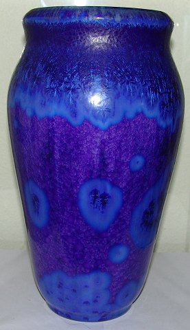 Large Royal Copenhagen Crystalline glaze vase by Carl Frederik Ludvigsen No 7. Measures 34cm and is in good condition. Signed with his monogram and No 7. So this is one of his very very first vases he signed and numbered. Covered in Crystals all over. A fantastic exsample of a Crystalline/crystal glaze vase.