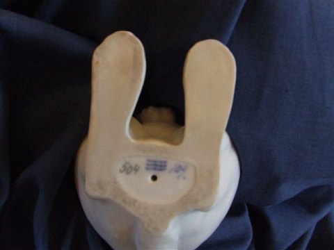 Royal Copenhagen Figurine Begging Rabbit No 504 White. Measures 18cm and is repaired. Designed by J.A. Heuch.