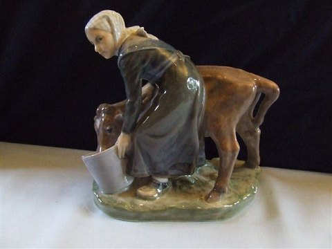 Royal Copenhagen Figurine Girl with Calf No 779. Measures 16cm x 17cm and is in good condition. Designed by Christian Thomsen. We have to variants in stock. Please see pictures.