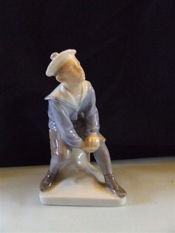 Royal Copenhagen Figurine Sailor Boy sitting No 963. Måler 11cm x 9cm og er i god stand. Designed by Christian Thomsen.