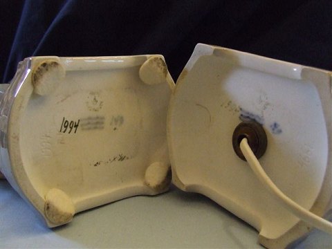 Royal Copenhagen Pair of Lamps with figurines of man and woman No 1994. In good condition.