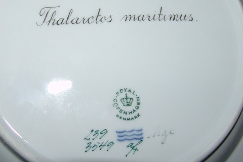 Royal Copenhagen Flora Danica Game Plate with Polar Bear No 239/3549. Measures 25cm and is in good condition. Latin name: "Thalarctos maritimus"