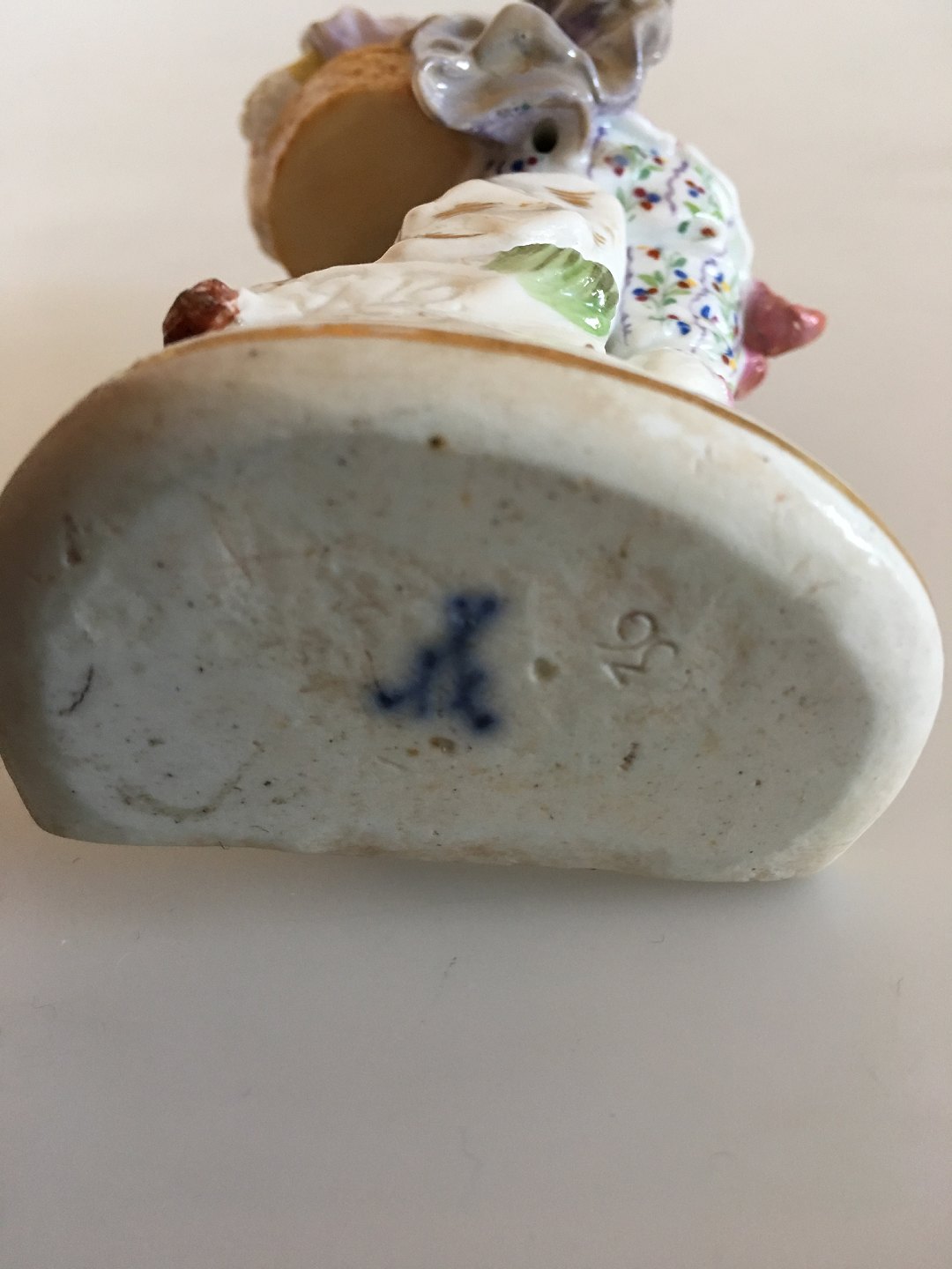 Meissen Figurine Boy with Dog. Measures 11,3cm. Boys arm and dogs legs has a repair.