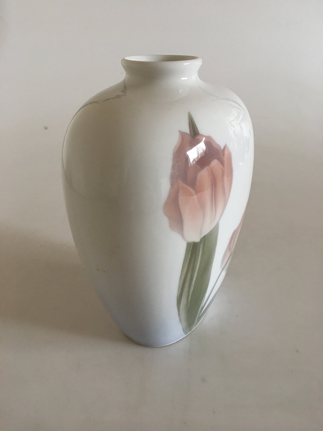 Royal Copenhagen Art Nouveau Vase with Tulips No 201/134D. Measures 17cm and is in good condition.