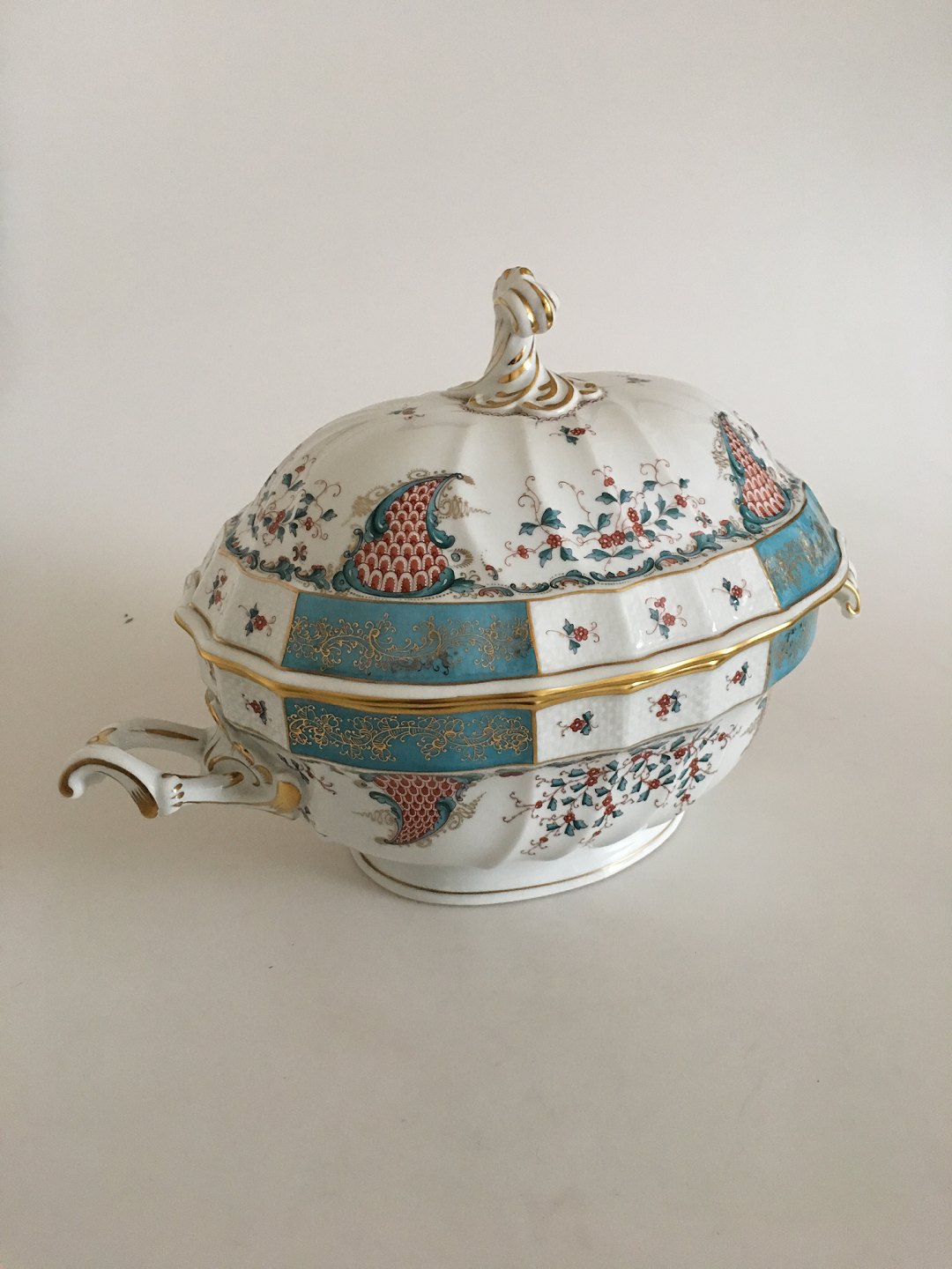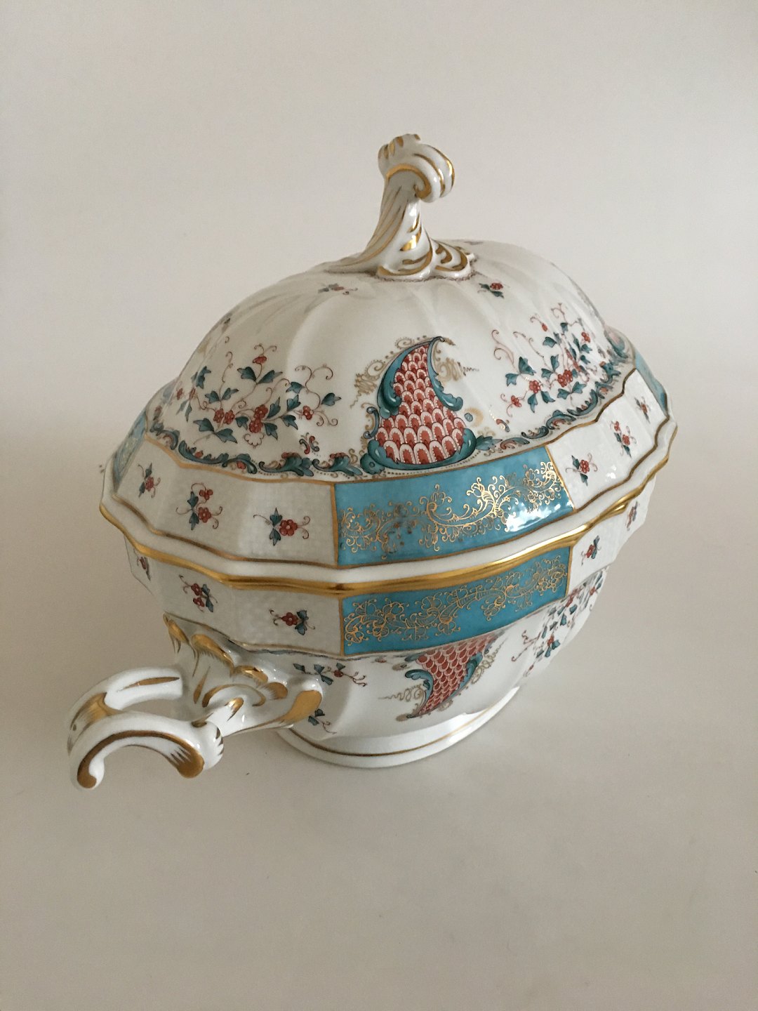 Herend Cornucopia (TCA) Soup Tureen, Hungary No 1006. Hungarian vintage Herend porcelain Soup Tureen. Hand painted with one of Herend's most magnificent pattern "Tupini, corne d'adordance" (called Cornucopia pattern in the USA) and 24K yellow gold accent. First class Herend trademark is on the bottom. Made in 1980s. Measures: 14 1/2" diameter. * * * Condition: Brand New, comes from closed out store. Excellent without any damage or repair.