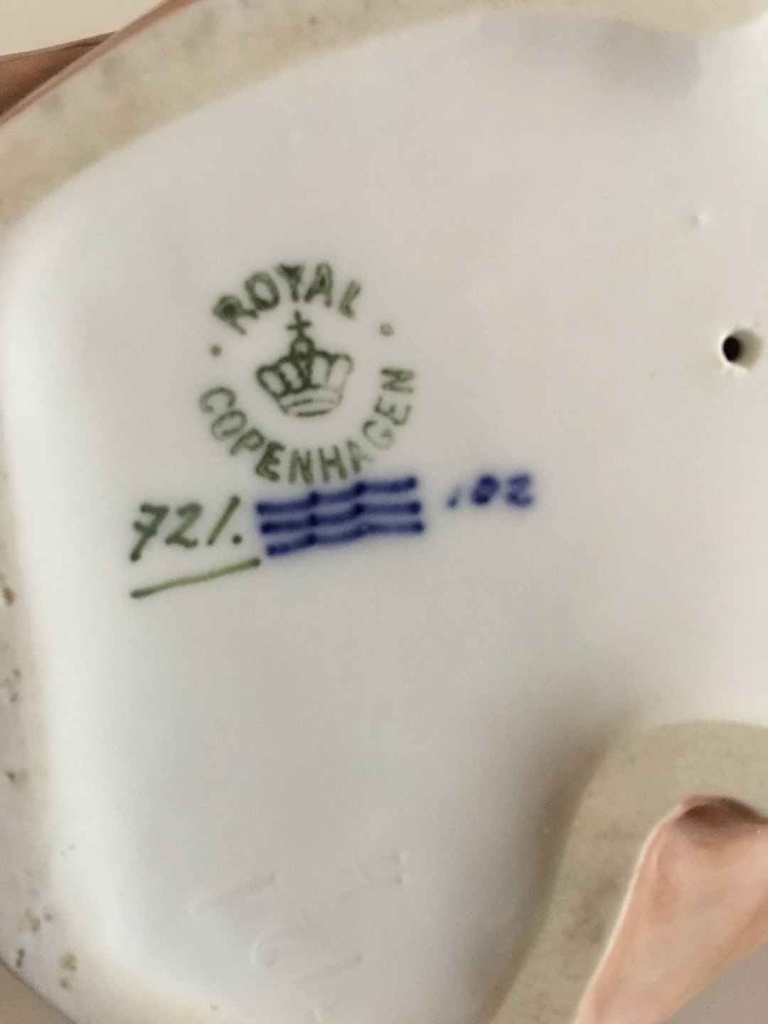 Royal Copenhagen Figurine Pair of Orangutans No 721. I rare blue and brown color. Measures 10cm x 14cm and is in good condition. Marked as a second, as it has a few white knobs, see pictures. Designed by Knud Kyhn in 1906.