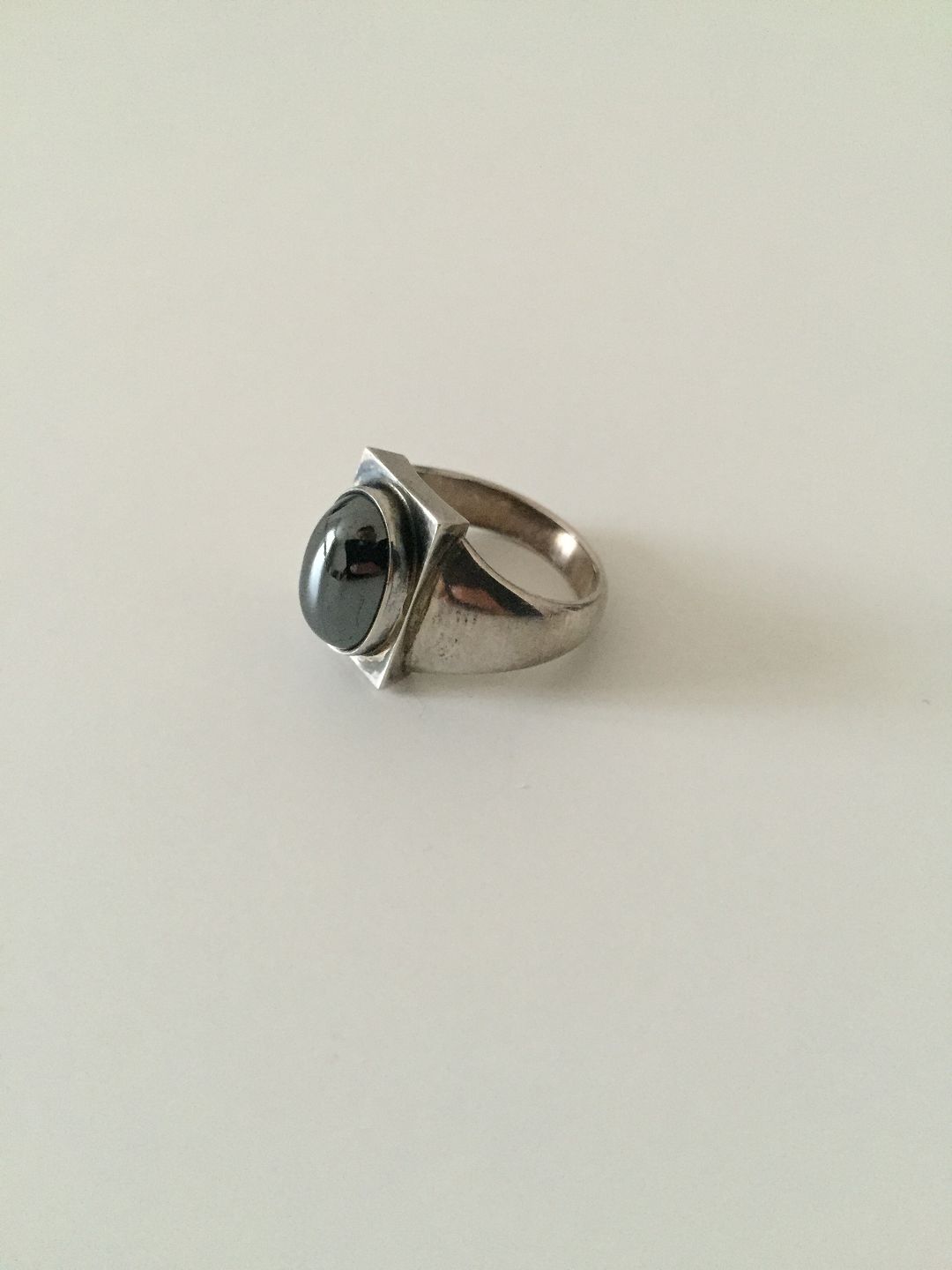 Georg Jensen Sterling Silver Ring with Hematite No84. Ring Size 50 / 5 1/4. Weighs 8.6 g / 0.30 oz.