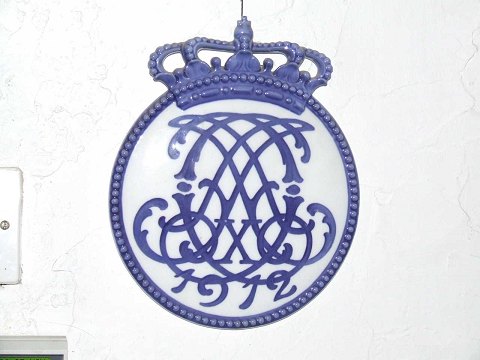 RC-CM137: 1912: Crowned coronation plate made on occasion of the ascension to the throne of King Christian X and Queen Alexandrine. Face to face monogram CXA and the year 1912. Designed by Arnold Krog. 2179 copies. 9”.