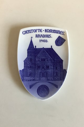 RC-CM45: 1903: The townhal1 of Gentofte. The plate in form of a shield. Inscription: GIENTOFTE KOMMUNES RAADHUS 1903 (town hall of Gentofte urban district). Designed by A. Theill. 225 copies. Height 8".