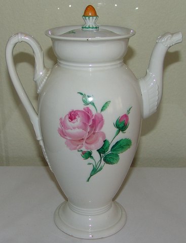 Meissen Porcelain Coffee Pot with Rose Design. Measures 27cm and is in good condition. The lid inside lock has chip/missing.
