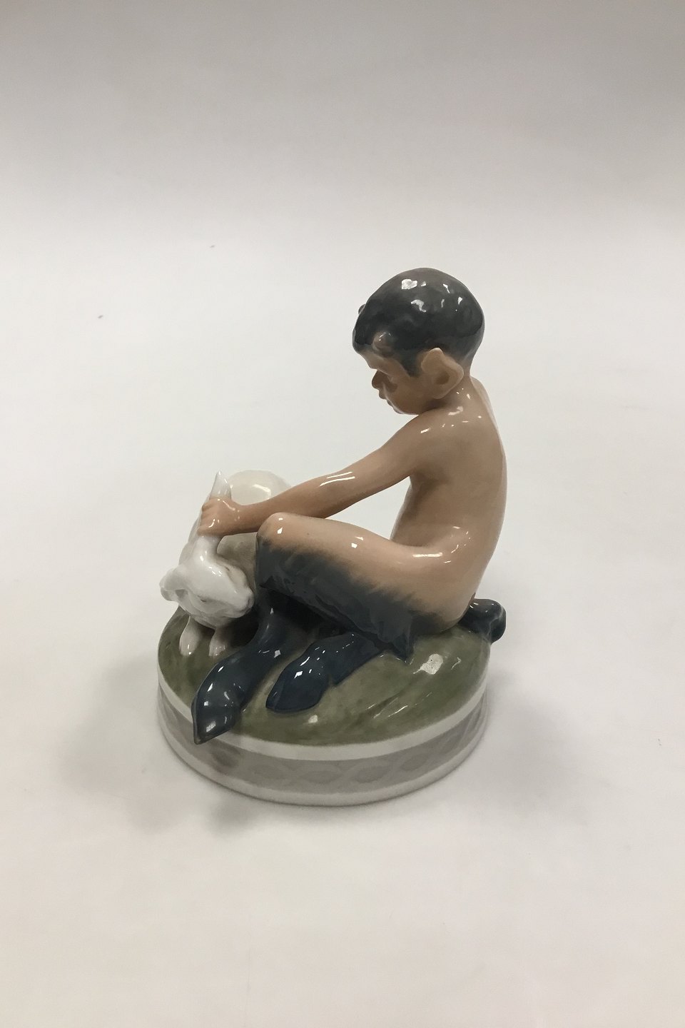 Royal Copenhagen Figurine Faun with Rabbit No. 439. Designed by Chr. Thomsen in 1903.