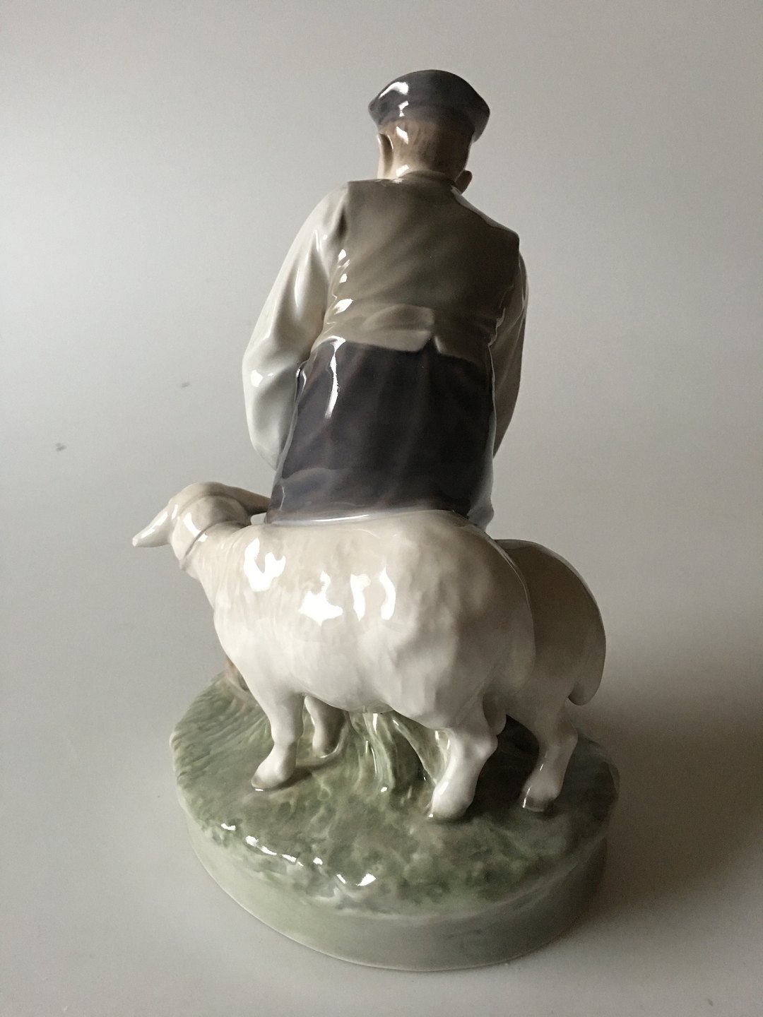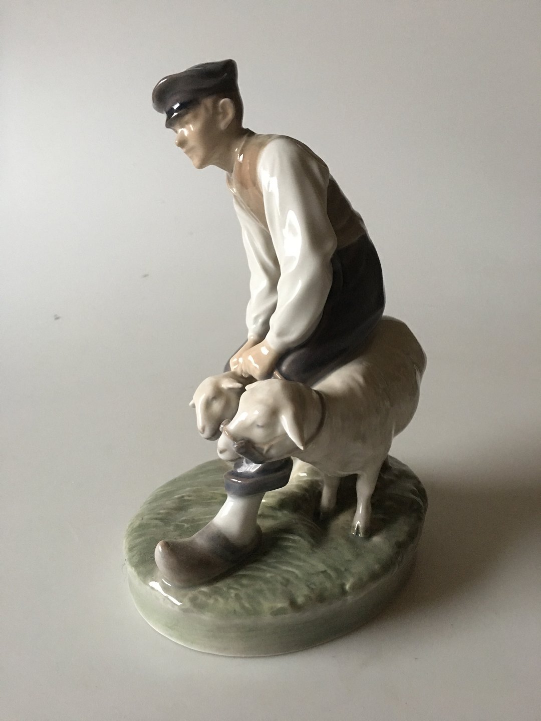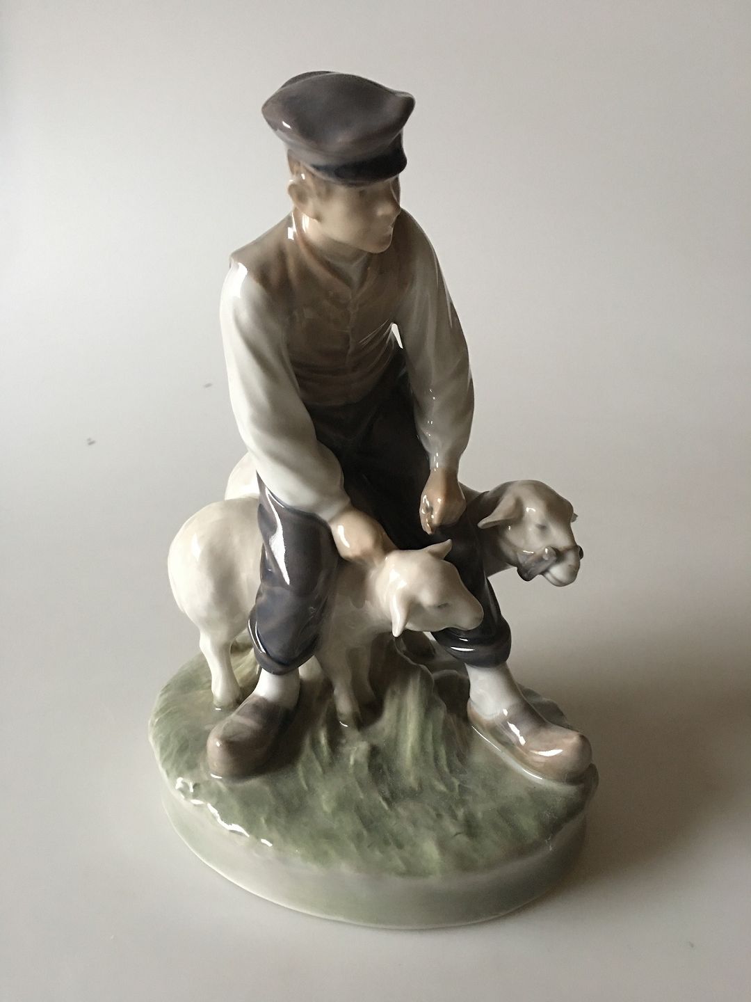 Royal Copenhagen Figurine Boy with 2 sheep No 627. Designed by Christian Thomsen. Measures 19cm x 11cm, one ship has chip on on ear.