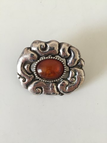Thorvald Bindesbøll Brooch from Holger Kysters Smithy with Stone. Measures 5.2 cm x 4.3 cm / 2 3/64 in. x 1 11/16 in. Weighs 17.3 g / 0.61 oz. Is in good condition.
