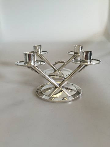 Hans Hansen Sterling Silver Pair of 2-armed Candlesticks(1930). Measures 18,5cm wide and 8,5cm high. Combined weight 450 gr (15.87 oz)