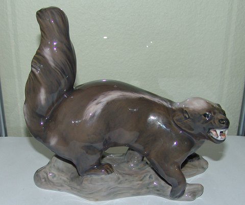 Royal Copenhagen Figurine Wolverine No 1402. Designed by Peter Harold and measures 20cm x 22cm and is in good condition.