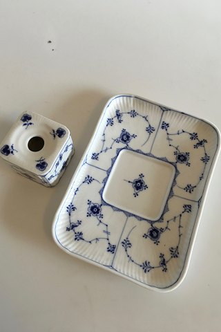 Royal Copenhagen Blue Fluted Plain Inkwell with tray No 128. 22.5 cm x 16 cm (8 55/64" x 6 19/64")
