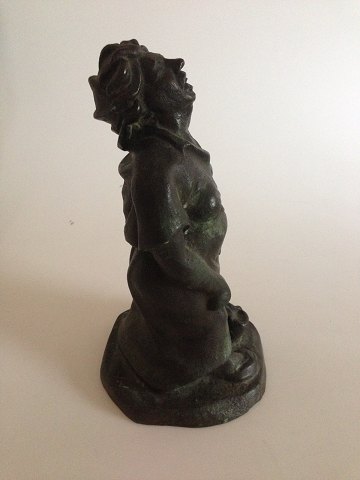 Siegfried Wagner Bronze figur af leende dame fra Ib Rathje Bronzestøberi. Measures 31cm and is in good condition.