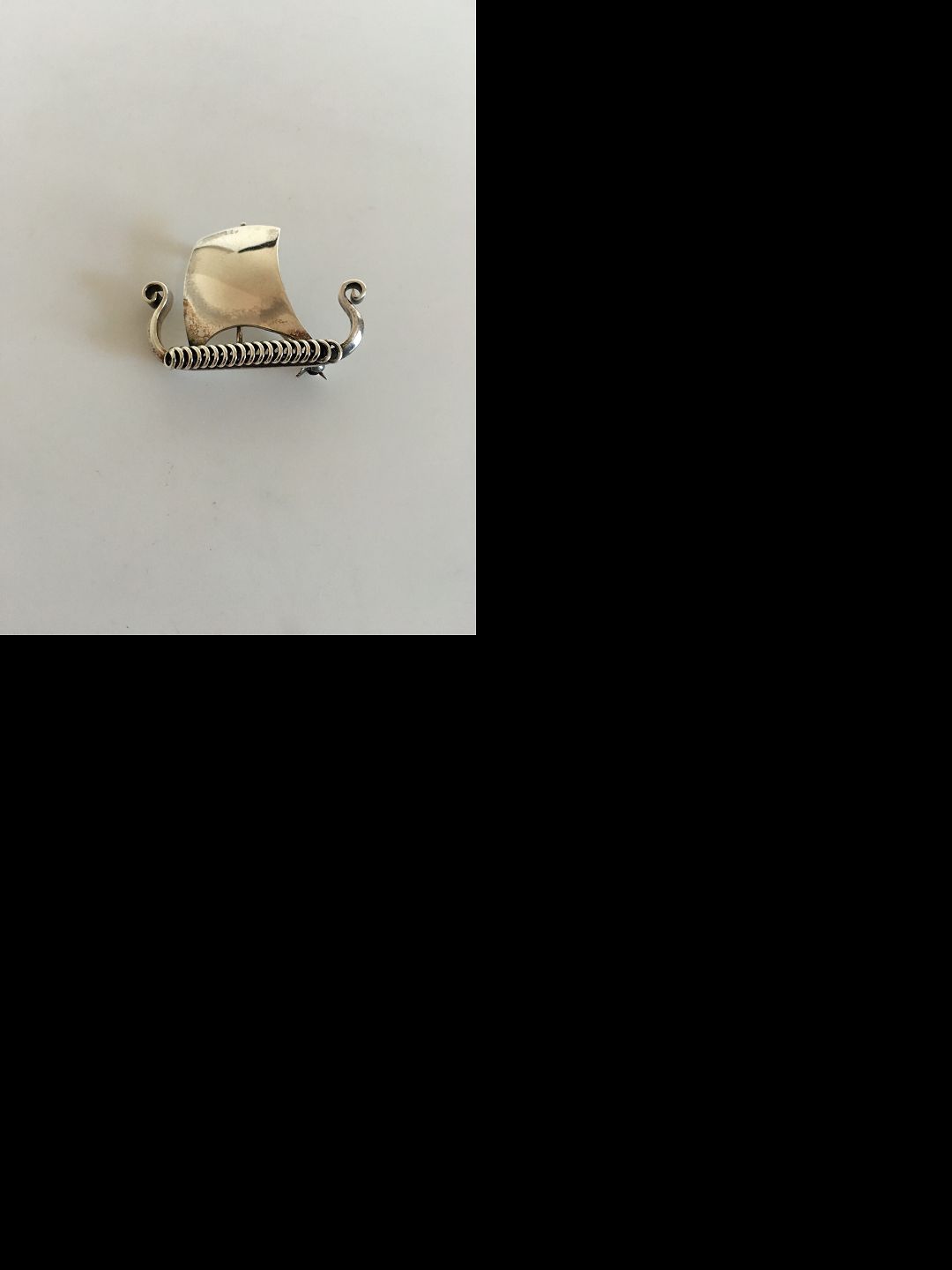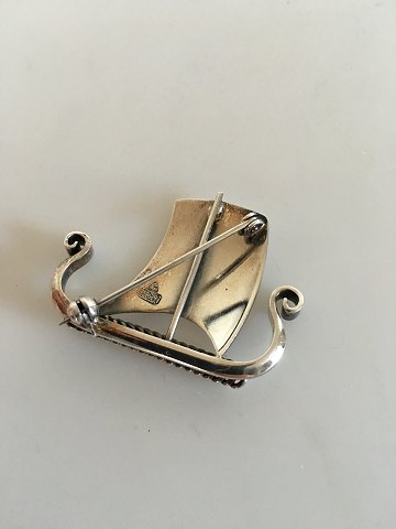 Anton Michelsen Sterling Silver Brooch Viking Ship. Measures 3.5 cm / 1 3/8". Weighs 7.8 g / 0.27 oz. Is in perfect condition.
