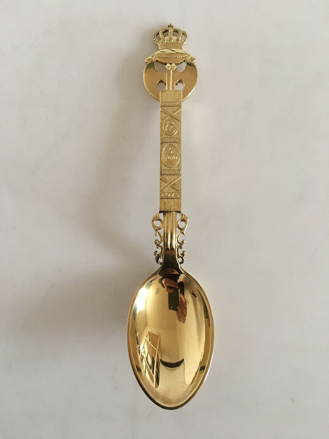 Anton Michelsen Commemorative Spoon In Gilded Sterling Silver from 1915.