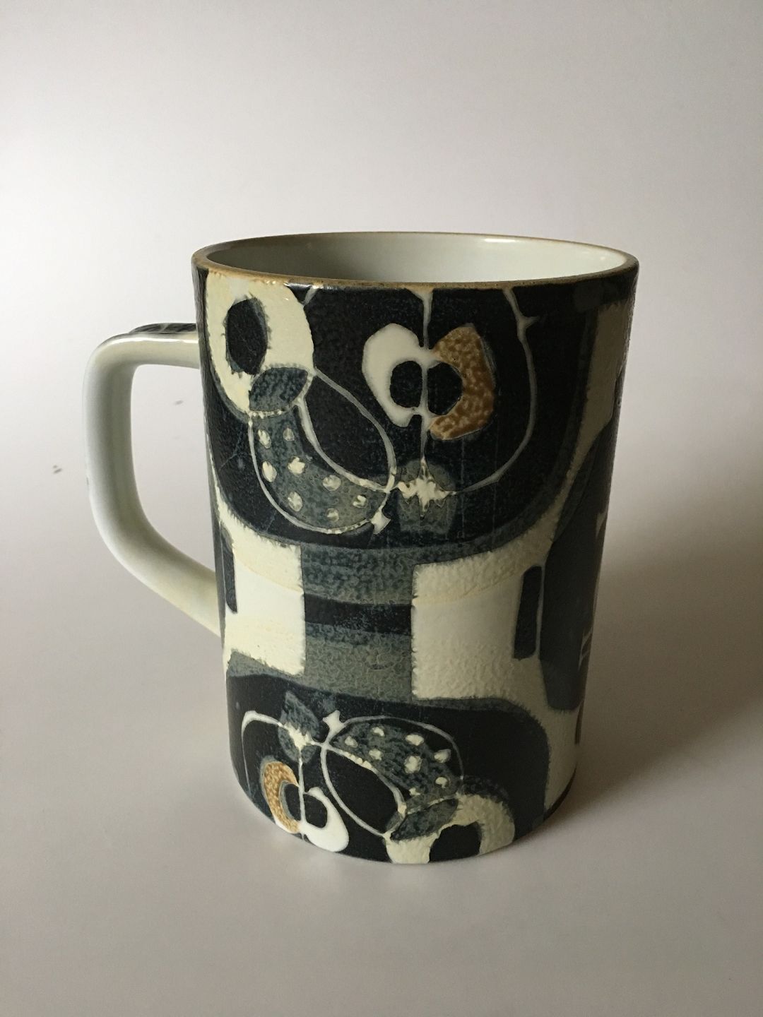 Royal Copenhagen Large Baca Earthenware Mug No. 810/3168. Measures 19,2 cm x 14,5 cm and is in good condition. Designed by Johanne Gerber.