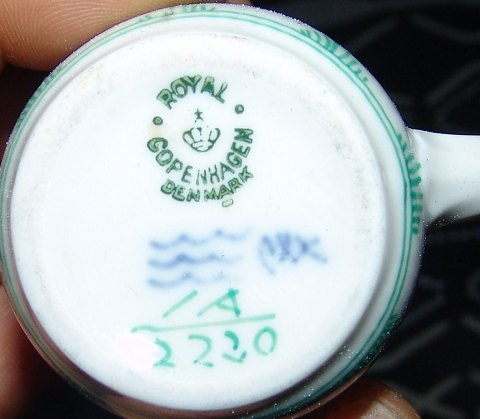 Royal Copenhagen Green Fluted Creamer 1A/2230. Measures 5,3cm and is in perfect condition.