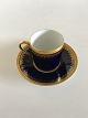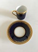 Rosenthal Mocca Cup in gold and blue. Measures 5 cm high and 5 cm in dia. Lighter wear on the gold.