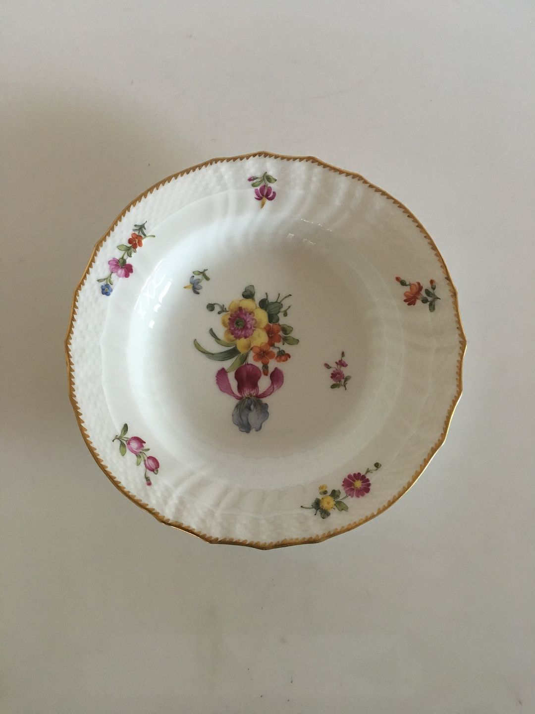 Royal Copenhagen Full Saxon Flower Deep Plate No 1617. Measures 20cm and is in good condition.