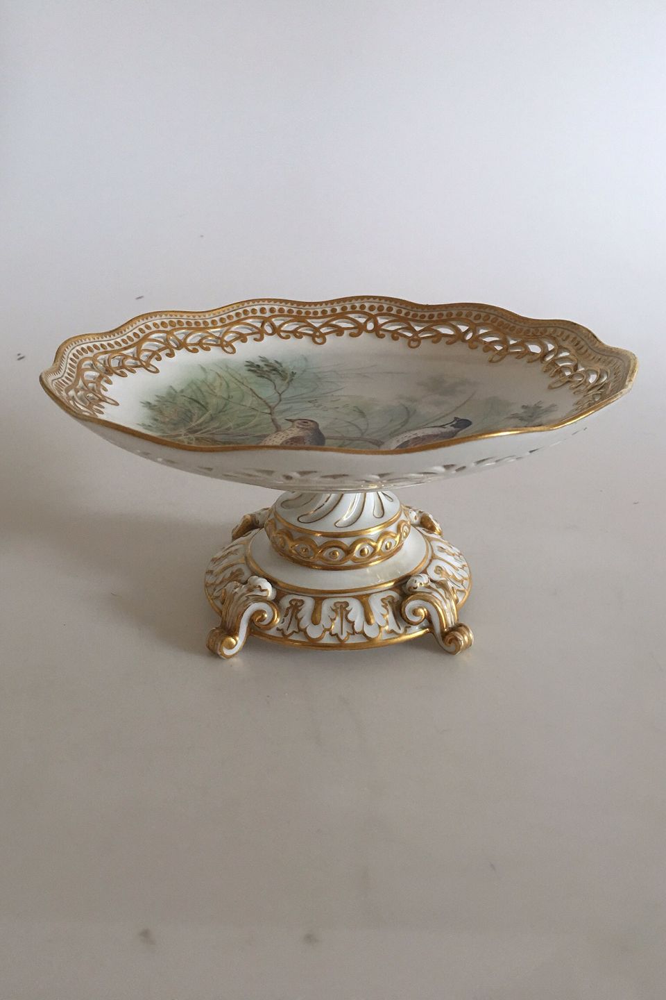 Royal Copenhagen Flora Danica Pedistal Bowl from the Bird/hunting "Emberica schoeniclus". Measures 20cm x 10cm and is in good condition. Signed H. Larsen for Henning Larsen also known as "Old Larsen". From 1893-1900.