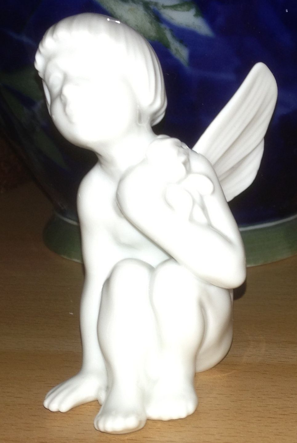 Dahl Jensen Blanc de Chine figurine Cupid with rose No 1163. Measures 10cm and is in good condition.