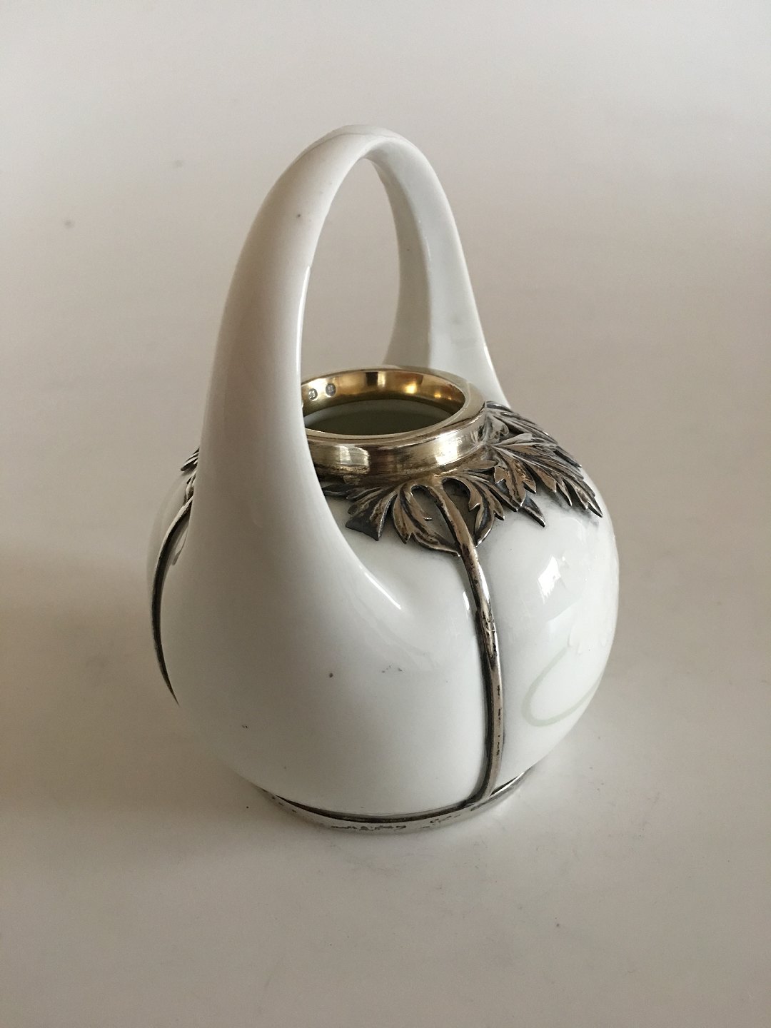 Royal Copenhagen Art Nouveau Vase with Anton Michelsen Sterling Silver Mounting from 1911. Nice rare pink glaze, with flowers in relief. In perfect condition.