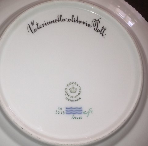Royal Copenhagen Flora Danica Salad Plate No 20/3573. Measures 19,5cm and is in good condition. Latin name "Valerianella alitaria Poll".