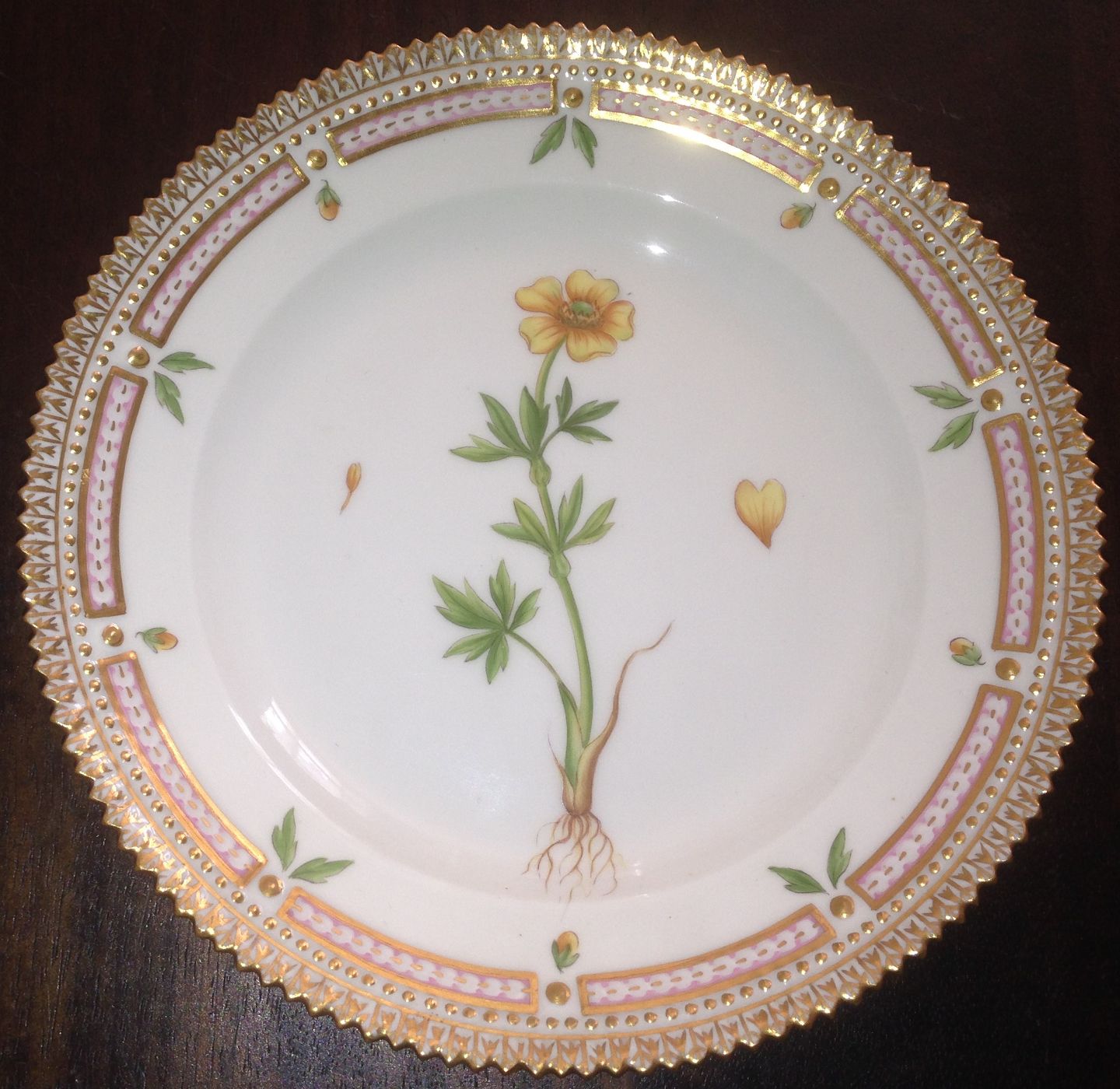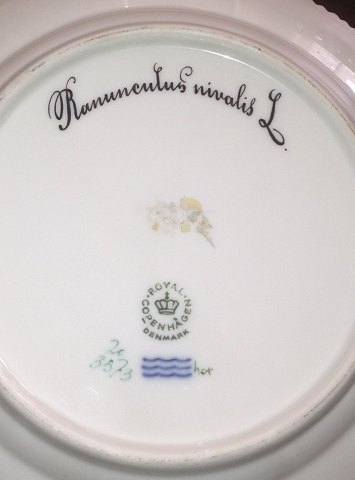 Royal Copenhagen Flora Danica Salad Plate No 20/3573. Measures 19,5cm and is in good condition. Latin name "Ranunculus nivalis L".