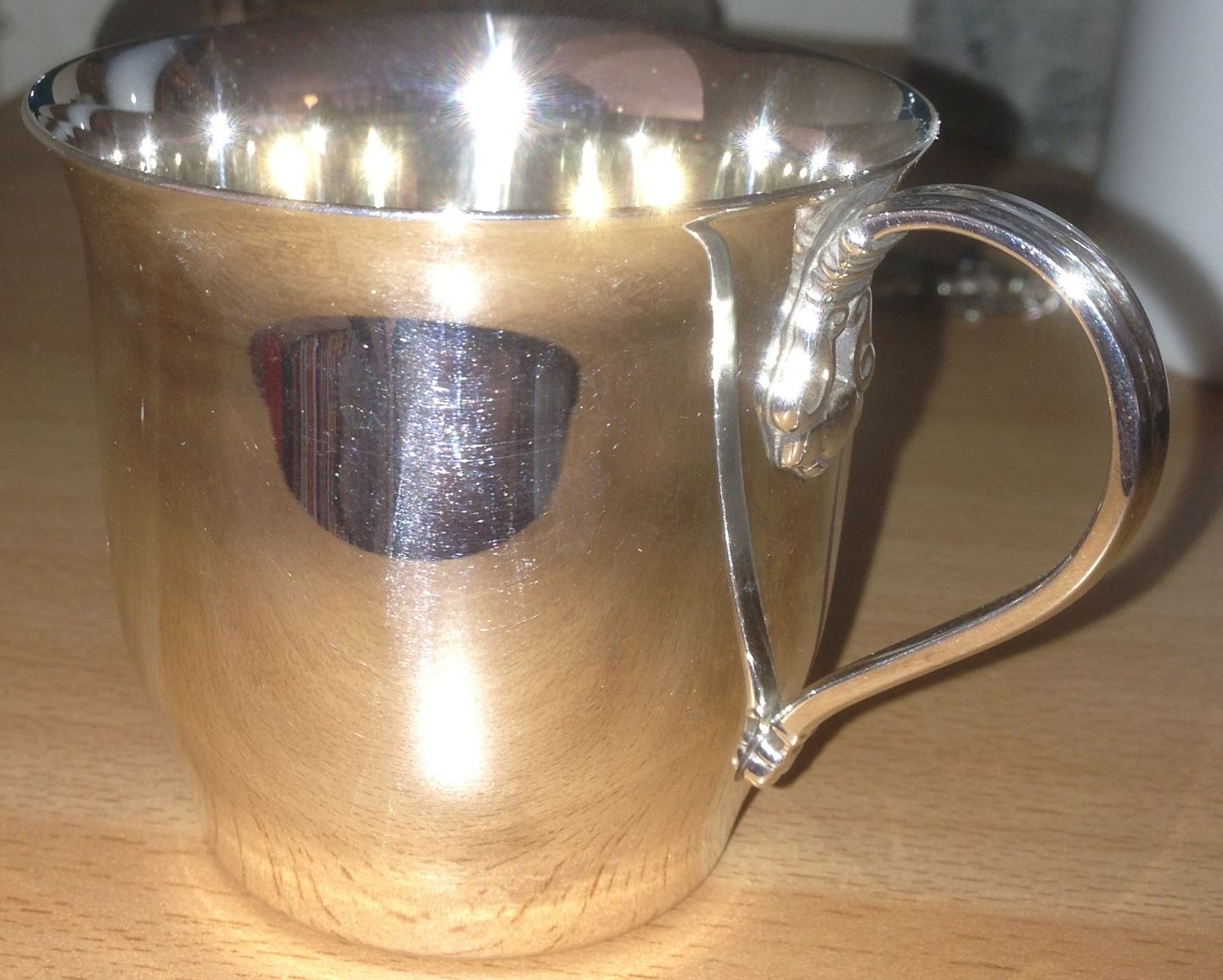 Georg Jensen Sterling Silver Acorn Child Cup No 1352. Measures 6cm high and holds 5oz. In perfect condition.