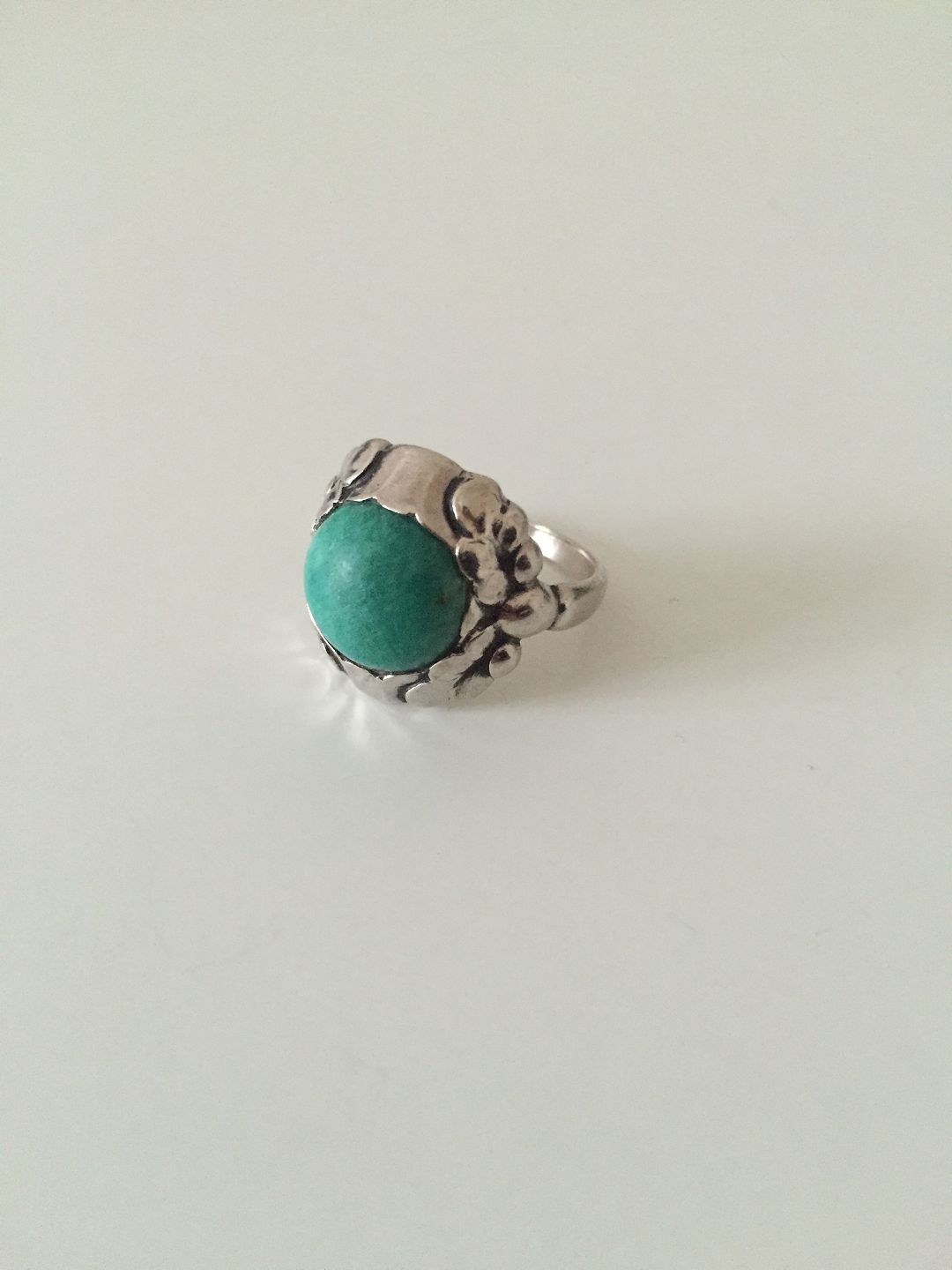 Georg Jensen Silver Ring with Green Agat No 11A. From 1933-1944 and is in good condition. Ring Size 56 / 7 1/2. Weighs 5.3 g / 0.19 oz.