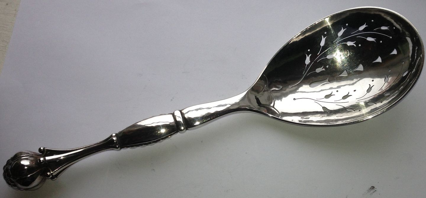 Georg Jensen Sterling Silver pierced Serving Spoon No 38. Measures 25cm an is in good condition.